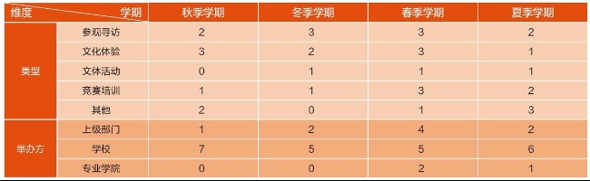 相比其他高校,上海大學的學期制較為特殊,采取秋、冬、春三個大學期制,夏季學期為兩周考試周與暑假。下面以2020-2021學年為例,以四個學期為時間參照,考察上海大學中外學生融合實踐活動的情況。