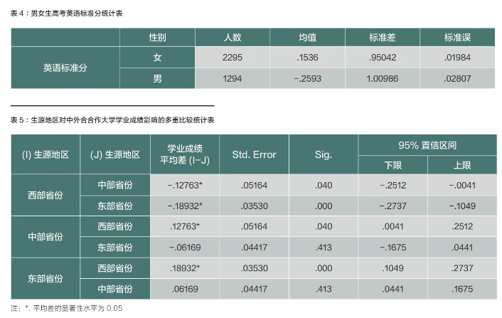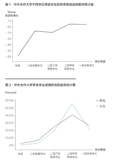 [摘要]為探究使中外合作大學(xué)學(xué)生獲得不同學(xué)位等級(jí)的影響因素,本文通過(guò)對(duì)N大學(xué)三屆共3697名本科生的相關(guān)學(xué)業(yè)信息進(jìn)行實(shí)證分析發(fā)現(xiàn),中外合作大學(xué)不同學(xué)院學(xué)生的高考總成績(jī)對(duì)學(xué)生學(xué)位等級(jí)的影響不同,高考英語(yǔ)成績(jī)過(guò)低會(huì)對(duì)學(xué)生學(xué)位等級(jí)產(chǎn)生負(fù)面影響,女生的學(xué)業(yè)成績(jī)顯著高于男生,西部省份學(xué)生學(xué)業(yè)成績(jī)顯著低于中東部省份。在此基礎(chǔ)上,為進(jìn)一步提升中外合作大學(xué)的教學(xué)質(zhì)量,本文提出根據(jù)學(xué)生的高考成績(jī)對(duì)其專業(yè)選擇進(jìn)行引導(dǎo)、在招生和教育過(guò)程中加強(qiáng)對(duì)學(xué)生英語(yǔ)能力的關(guān)注、對(duì)來(lái)自西部省份的學(xué)生提供更多的學(xué)習(xí)方法指導(dǎo)等建議。