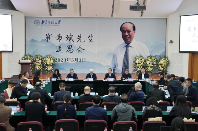 出席追思會的嘉賓有北京師范大學資深教授、著名教育家顧明遠先生,北京大學原黨委書記、教育學院名譽院長閔維方教授,首都師范大學黨委書記孟繁華教授,中國教育學會教育經濟學分會理事長杜育紅教授,北京師范大學教育學部部長朱旭東教授、教育學部高洪源教授,北京科技大學毛祖桓教授,北京教育學院王玉崑教授,北京師范大學經濟與工商管理學院黨委書記、《教育經濟評論》主編孫志軍教授,以及靳希斌先生的學生、國內訪問學者等。追思會由靳希斌先生1997級博士生、華南師范大學教師教育學部部長王紅教授主持。