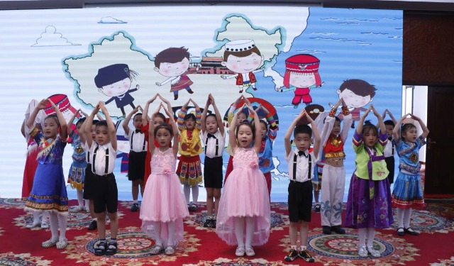 5月12日,“我是小小中國娃”愛國主義教育活動啟動儀式在北京民族文化宮舉行。儀式上,小朋友們表演節目。主辦方供圖