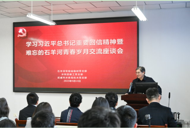 中國教育報-中國教育新聞網訊(記者 梁丹)為深入貫徹學習習近平總書記重要回信精神,進一步繼承與發揚“艱苦奮斗、團結協作、勇于創新、追求卓越”的石羊河精神,近期,中國農業大學石羊河實驗站臨時黨支部聯合水利與土木工程學院水利系教工黨支部及武威市水務局機關黨支部,開展了學習習近平總書記重要回信精神暨難忘的石羊河青春歲月交流座談會。中國工程院院士康紹忠主持會議。