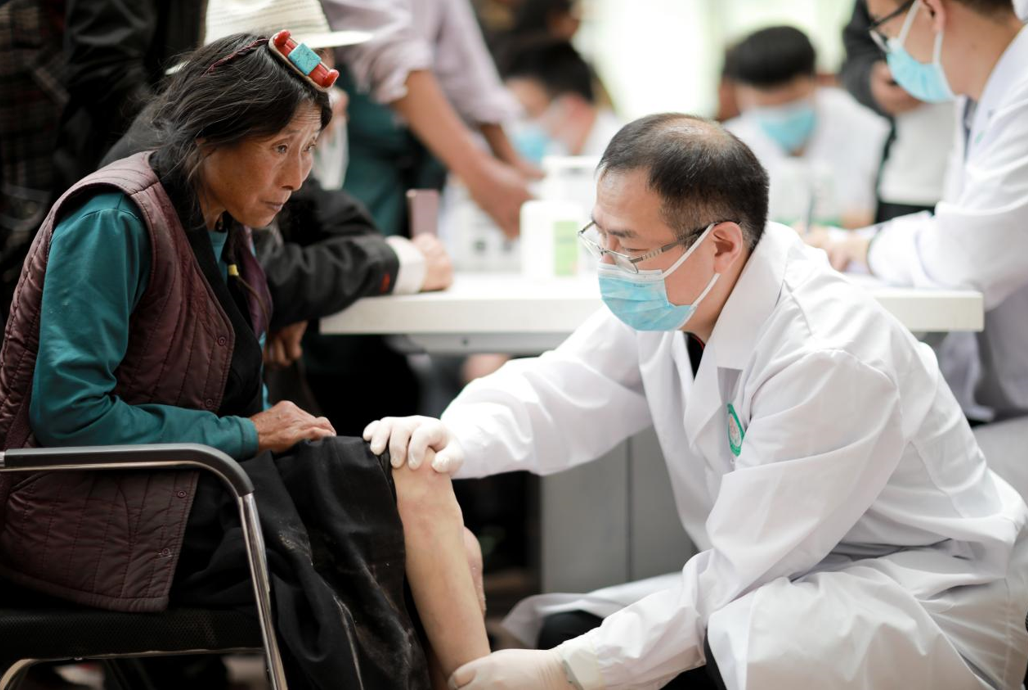 重醫附一院骨科主任黃偉在昌都市芒康縣髖膝關節疾病貧困患者進行免費復篩及手術。學校供圖