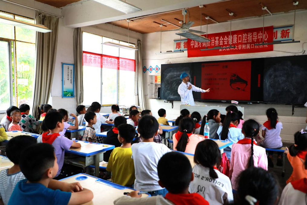 重醫附屬口腔醫院為對口幫扶的鄉鎮小學生進行口腔健康教育。學校供圖