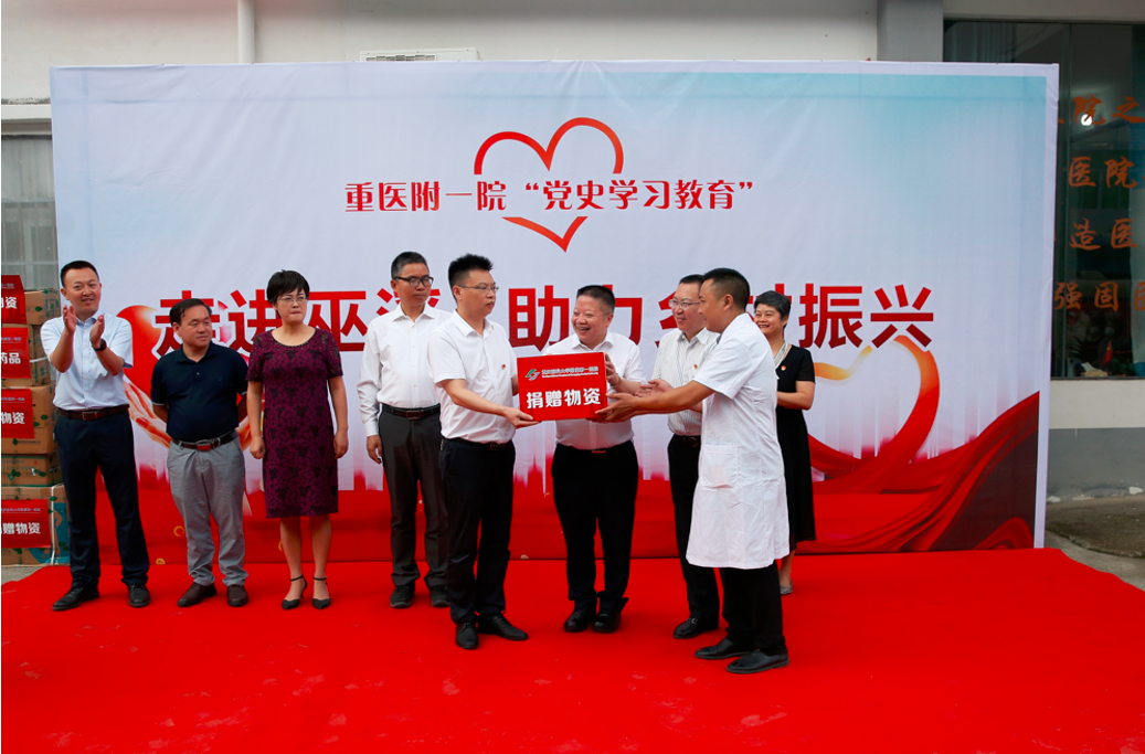 2021年,重醫附一院黨委書記許平向巫溪縣通城鎮衛生院捐贈藥品和醫療耗材。學校供圖