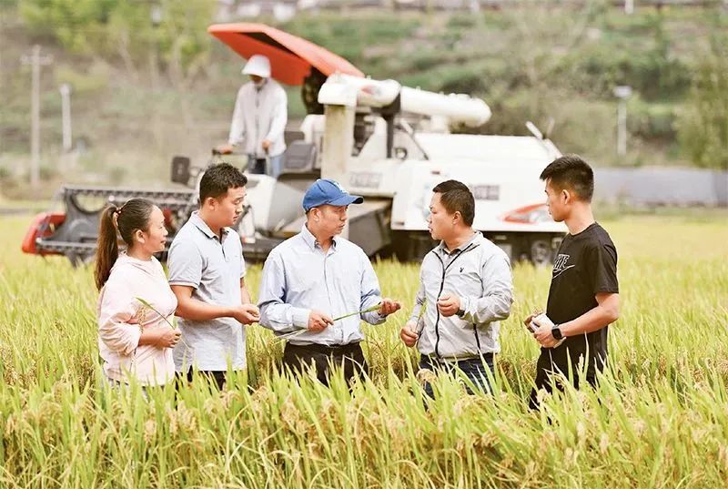 教育部黨組通過政治巡視推動直屬高校黨委扛牢政治責任、強化使命擔當。圖為2021年10月8日,南京農(nóng)業(yè)大學師生在貴州省黔東南苗族侗族自治州麻江縣種植示范基地。該基地是在南京農(nóng)業(yè)大學幫助下建成的,培育出優(yōu)質稻種“寧香粳9號”。 教育部供圖