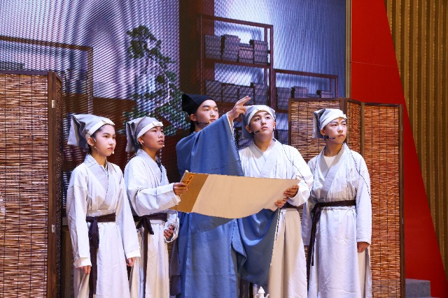 震川中學學生表演校史故事《震川先生》。嘉定區教育局供圖