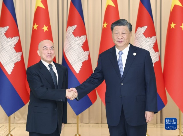 習近平指出,今年是中柬建交65周年和中柬友好年。我同西哈莫尼國王兩次會面,體現了中柬親如一家的深厚情誼。前不久,我在北京會見洪瑪奈首相,就傳承世代友好、深化全面戰略合作達成重要共識。中方珍視同柬埔寨王室的特殊友誼,高度重視中柬關系發展,愿同柬方一道,推動中柬命運共同體建設走深走實。