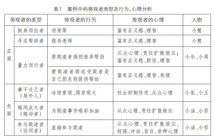 表1 案例中的旁觀者類型及行為、心理分析