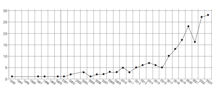圖1 1993年—2023年有關跨學科主題教學的期刊發文量統計圖