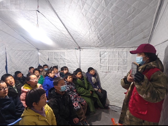這樣的臨時“帳篷學校”積石山縣共有145個。臨夏州教育局為迅速恢復災后教育教學秩序,保障每一個受災學生有書讀、有學上,在全縣145個安置點開設臨時“帳篷學校”,有計劃、有秩序地開展教育教學工作和形式多樣的教育活動,倡議州、縣市教育局、州直各學校根據自身實際,自愿向積石山縣派駐支教援助團。