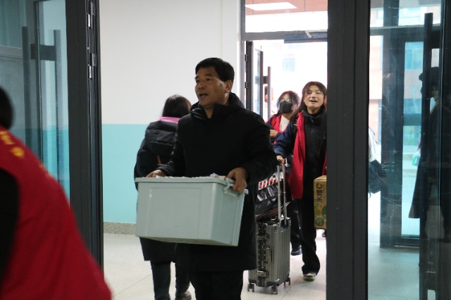 “聽說今天要出發去新地點線下教學,我特別激動,早上五點半就起來了?!狈e石中學高三(2)班學生馬海芳開心地表示,災情發生后,根本沒想到還能這么短時間恢復線下學習,“到了宿舍我更開心,上床下桌的住宿條件,熱得燙手的暖氣,都讓我很心安。”