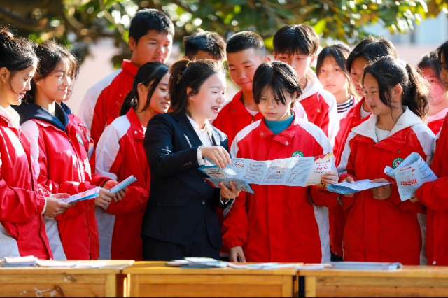 近日,在貴州省黔西市鐘山鎮(zhèn)鐘山中學(xué),鐘山司法所工作人員給學(xué)生講解法律知識(shí),為維護(hù)社會(huì)穩(wěn)定和民族團(tuán)結(jié)提供有力法律保障。周訓(xùn)超 攝