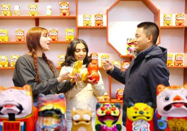 非遺傳承人在給外國(guó)留學(xué)生講解“泥叫虎”的制作工藝 張進(jìn)剛 攝