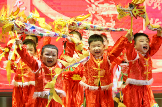 小朋友通過舞龍表演,感受中國(guó)傳統(tǒng)民俗文化的魅力。通訊員 周強(qiáng) 攝