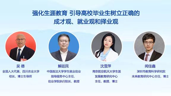 吳德:以四川農業(yè)大學為例,學校將就業(yè)教育、就業(yè)引導納入“三全育人”重要內容,將生涯教育納入人才培養(yǎng)全過程。大一階段通過一人一冊的《新生指南》、職業(yè)生涯規(guī)劃與就業(yè)指導活動月系列活動,開啟學生職業(yè)生涯規(guī)劃和就業(yè)意識;大二、大三階段實施“蓄能培養(yǎng)”,通過《大學生職業(yè)生涯規(guī)劃》《大學生就業(yè)指導》課程以及學生對于專業(yè)課的深入學習,引導學生逐步建立科學就業(yè)觀,提升職業(yè)素養(yǎng);畢業(yè)年級做好“發(fā)力沖刺”,精準掌握每一位畢業(yè)生的就業(yè)需求,提供個性化就業(yè)指導,連續(xù)10年編印《畢業(yè)生就業(yè)指南》等。