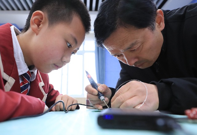 3月26日,課后延時服務時間,徐州市大學路實驗學校王循老師帶領(lǐng)學生開展電子焊接社團活動。