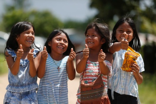 ??資料圖片:這是在巴西亞馬孫州拍攝的原住民兒童。新華社發(盧西奧·塔沃拉攝)