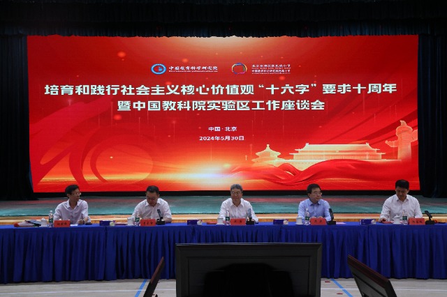 中國教育報-中國教育新聞網訊(記者 余闖)5月30日,培育和踐行社會主義核心價值觀“十六字”要求十周年暨中國教科院實驗區工作座談會在京召開。教育部黨組成員、副部長吳巖出席會議并講話。北京市委教育工委副書記、北京市教委主任李奕出席會議并作主題發言。中國教科院黨委書記、院長,全國教育科學規劃領導小組辦公室主任李永智出席會議并致辭。