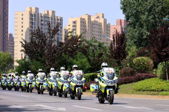 6月6日,山東省棗莊市公安局市中分局交通警察大隊(duì)“護(hù)航高考”鐵騎隊(duì)員亮相城區(qū)街頭。通訊員 吉喆 孟見(jiàn) 攝
