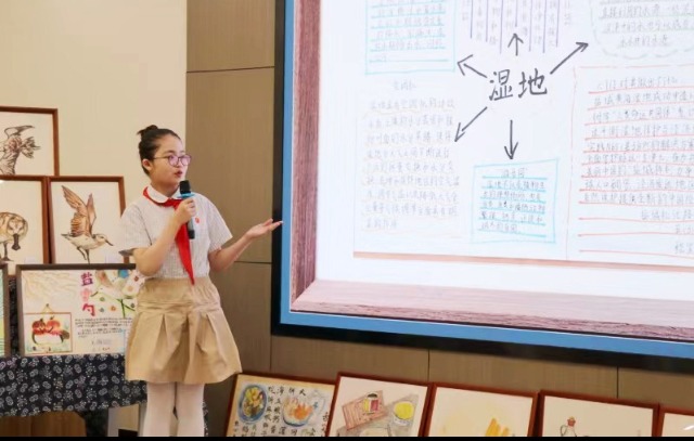 在此基礎(chǔ)上,學(xué)生就閱讀、采訪、參觀和體驗(yàn)所得,制作成思維導(dǎo)圖、自然筆記,印制宣傳標(biāo)語,撰寫心得文章并進(jìn)行宣講,以自己的實(shí)際行動為保護(hù)濕地、建設(shè)家鄉(xiāng)作貢獻(xiàn)。