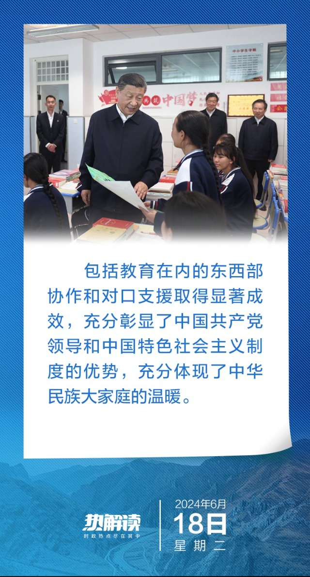 6月18日下午,在青海省考察的習近平總書記,首站來到這所中學看望老師和同學們。他先后走進食堂、宿舍、教室,關心學生們的飲食、住宿、學習……了解當地深入推進教育工作東西部協作和對口支援等情況。