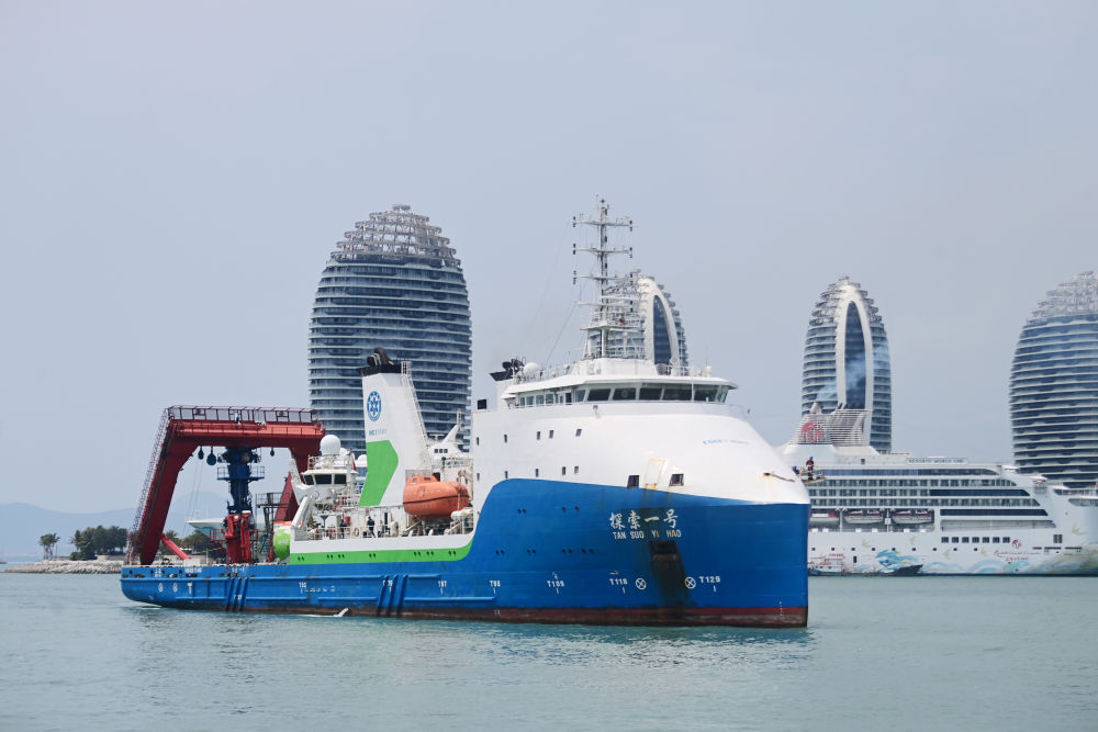 “探索一號”科考船搭載“奮斗者”號全海深載人潛水器返回海南三亞(2024年3月28日攝)。此次科考歷時50天,順利完成中國-印度尼西亞爪哇海溝聯合深潛任務。新華社發(沙曉峰 攝)