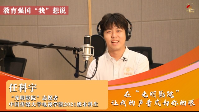 在“光明影院”,視障群體如何“看”一場(chǎng)電影?用聲音傳遞色彩,大學(xué)生志愿者如何詮釋“我是你的眼”?今天的教育強(qiáng)國(guó)“我”想說(shuō), 跟隨中國(guó)傳媒大學(xué)大學(xué)生志愿者任科宇一起走進(jìn)“光明影院”,聆聽(tīng)愛(ài)與希望的光影故事,感受當(dāng)代大學(xué)生的責(zé)任與擔(dān)當(dāng)。