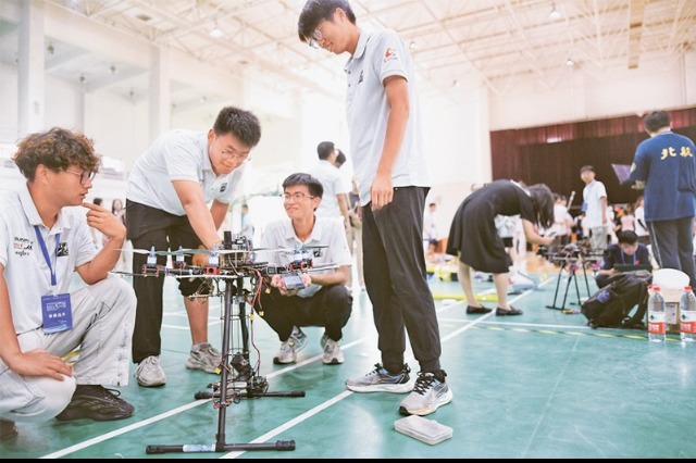 社會主義建設者和接班人必須全面發展。形式多樣的學術實踐競賽,對培養大學生科學精神、全面發展發揮了積極作用。8月17日至18日,2024中國大學生飛行器設計創新大賽中部賽區選拔賽在天津舉行。圖為參賽選手調試飛行器。 中新社記者 佟郁/攝