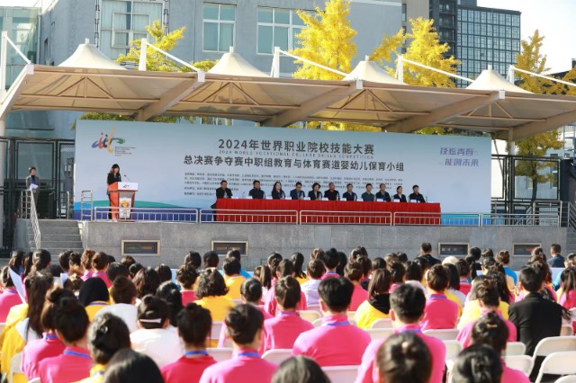 2024年世界職業院校技能大賽總決賽爭奪賽中職組教育與體育賽道嬰幼兒保育小組開賽。圖為10月28日開賽式。北京市求實職業學校供圖