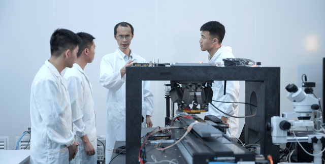 圖為劉小康(右二)在實驗室指導學生做實驗。(重慶理工大學供圖)