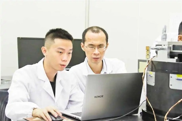 圖為劉小康(右)在指導學生做實驗。(重慶理工大學供圖)
