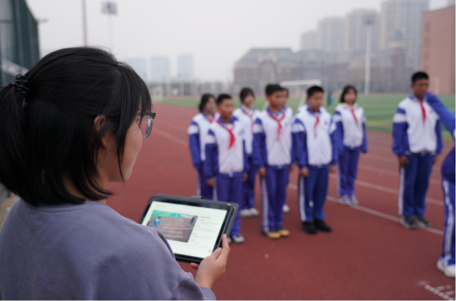 天津市第二新華中學(xué)體育課上,教師利用AI工具實(shí)時(shí)記錄分析學(xué)生運(yùn)動(dòng)成績(jī)。學(xué)校供圖