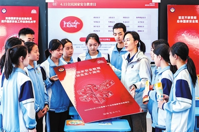 4月14日,內蒙古呼和浩特市玉泉區委網信辦、區團委聯合市第二十七中學開展“國安有我·青春挺膺”迎接全民國家安全教育日活動。丁根厚 攝