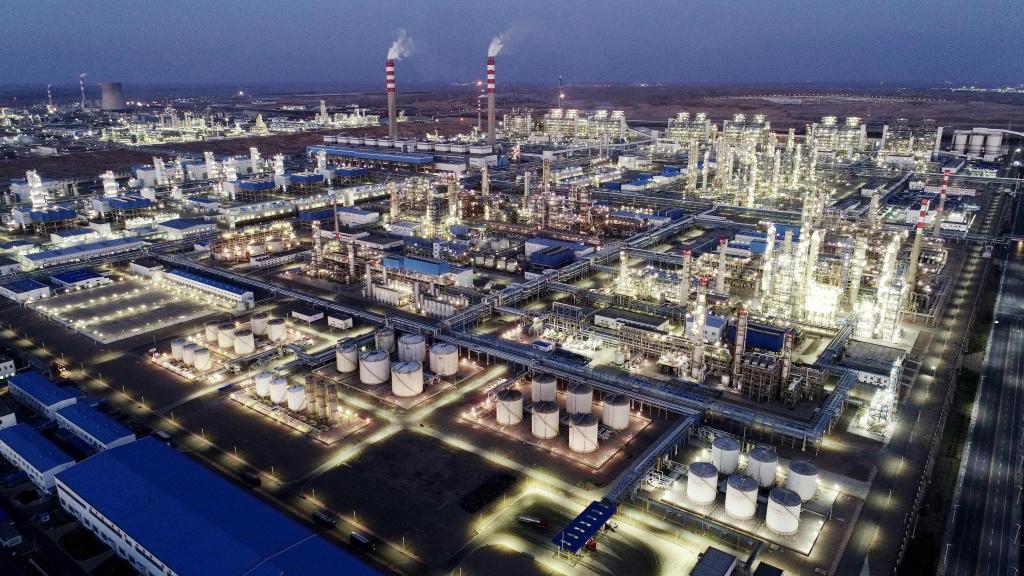這是國家能源集團寧夏煤業公司400萬噸煤制油項目夜景(2022年6月22日,無人機照片)。新華社記者 王鵬 攝