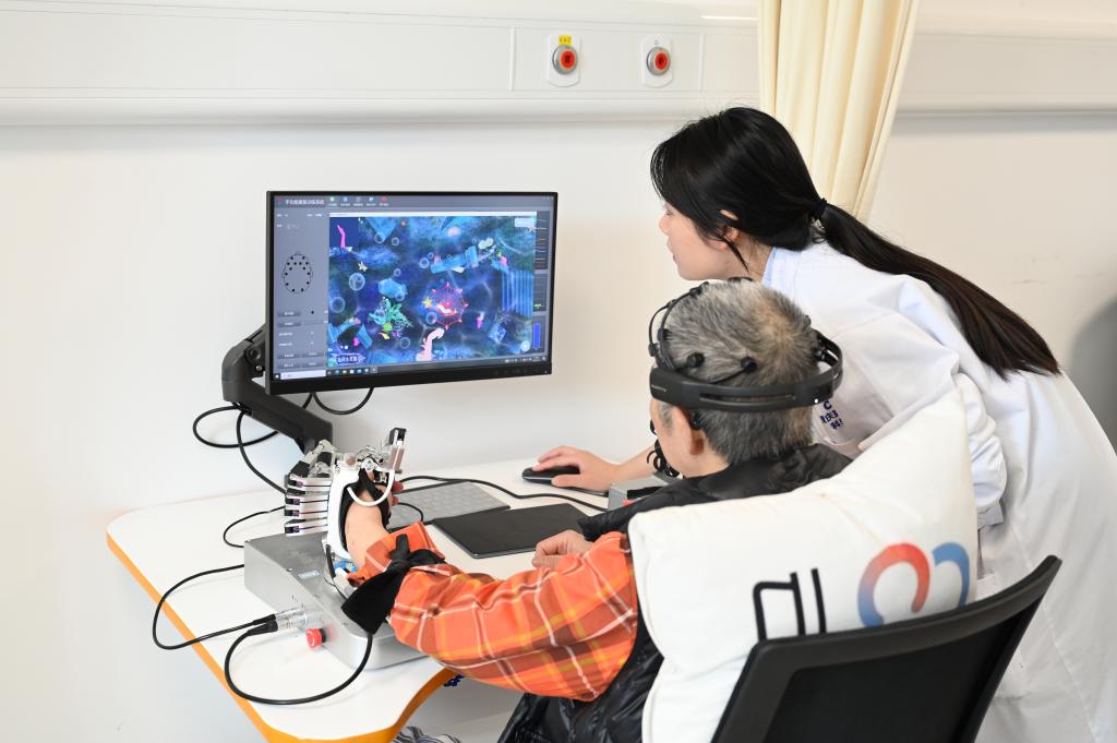 老吳沒想到有一天能用意念操控手指,這多虧重慶云腦醫療科技有限公司研發的腦機接口康復訓練系統。“被送到醫院時我左手左腳都動彈不得,一個療程后,生活基本能自理了。”老吳說。