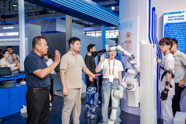 本屆服貿會以“數智領航,服貿煥新”為主題,線下參展企業近2000家,其中世界500強及國際行業龍頭企業達500家,覆蓋26個服務貿易前三十強國家和地區,全球資源聚合與內外聯通功能全面凸顯。北職大圍繞“AI教育+”主題全面展示了該校近年來在“人工智能助力職教發展”領域取得的成果及學生科技競賽獲獎作品。