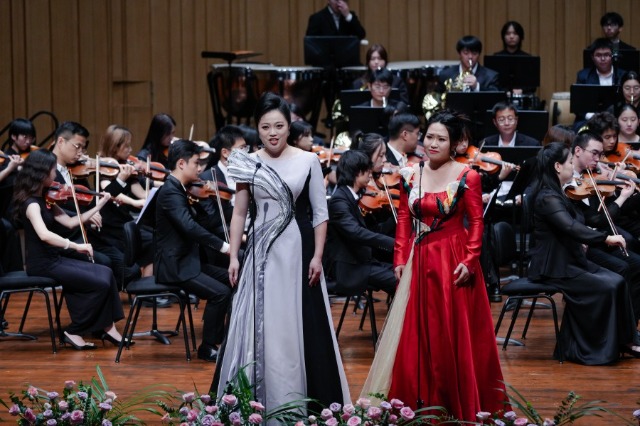 劉文婷、黃敏佳二重唱《親愛的祖國》。學校供圖