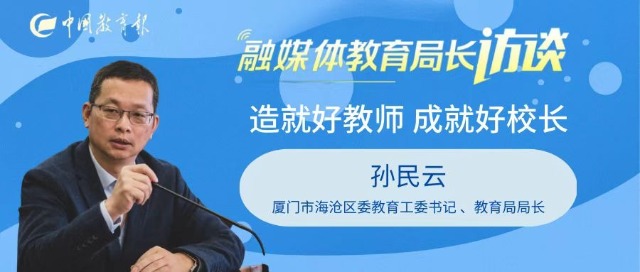 4月20日下午3:00,中國教育報“融媒體教育局長訪談”欄目,邀請廈門市海滄區委教育工委書記 、教育局局長孫民云做客直播間,分享他們的隊伍建設秘籍。