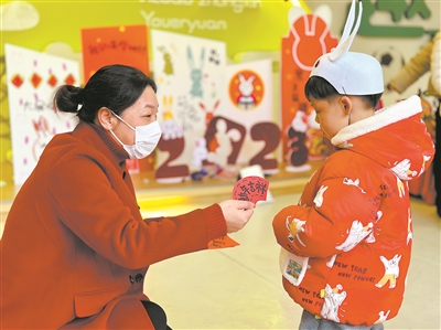 近日,浙江省杭州市富陽區春江街道中心幼兒園開展了以“兔飛萌進·向未來”為主題的開學第一課。幼兒園準備了豐富的開學儀式,孩子們接過園長、老師們親手做的福卡和甜蜜蜜的糖果,參與到畫福字、抽福卡、奔跑吧福兔等有趣的活動中。孩子們每完成一項任務就可以得到一枚印章,各種挑戰機會,讓孩子們更團結、更愿意拼搏了。趙柳燕 供圖