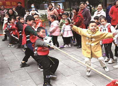 近日,在四川省內(nèi)江市東興區(qū)西林街道金牛社區(qū),孩子們正在參加由社區(qū)組織的拔河比賽。近年來,內(nèi)江市有序整合場(chǎng)地資源,統(tǒng)籌功能設(shè)施,打造“甜城寶貝屋”,通過組織開展趣味運(yùn)動(dòng)、體驗(yàn)傳統(tǒng)文化等多種公益服務(wù),有效緩解了群眾周末孩子托管難題。