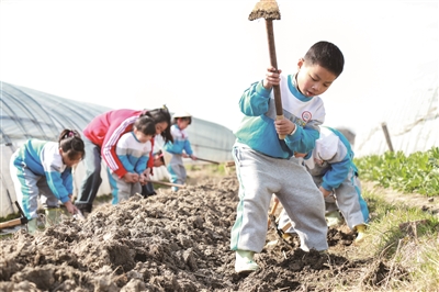 近日,浙江省湖州市長興縣太湖街道中心幼兒園的孩子們在田間翻土。該園開展勞動實踐教育活動,組織孩子們走進田間,體驗翻土、栽種、澆水等農事勞動,感受勞動的艱辛,培養勤儉節約、熱愛勞動的好習慣。周洪峰 攝