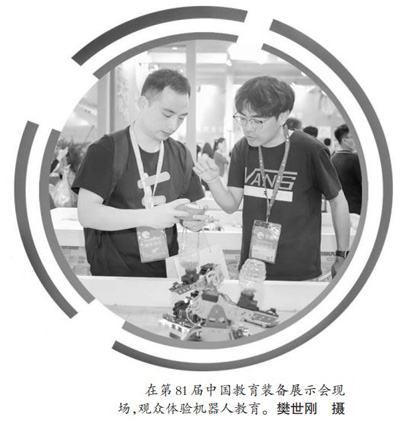 從硬件到軟件,從線下到線上,從提供設(shè)備到給出解決方案,數(shù)字化技術(shù)和教育理念逐漸融合。作為我國教育裝備領(lǐng)域最前沿的“風(fēng)向標(biāo)”,教裝展正勾勒著未來教育的模樣。