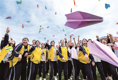 5月23日,內蒙古自治區呼和浩特市第十二中學高三學生將寫有自己夢想的紙飛機拋向空中。2023年高考日益臨近,該校在做好高三學生復習備考的同時,開展多種形式的趣味健身活動,幫助高三學生增強身體素質、保持陽光心態。丁根厚 攝