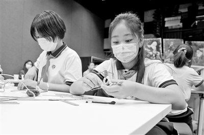 | ②北京市東城區燈市口小學學生在“筑夢冬奧”實踐課上,制作模型展示體育、勞技、信息技術等學科交叉知識。本報記者 單藝偉 攝 |