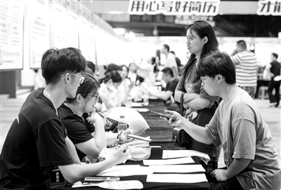 7月21日,求職者與用人企業招聘人員交流。當日,浙江省金華市舉辦“人才夜市”高校畢業生專場,多家生物醫藥、機械制造、新能源企業為求職者提供工作崗位,吸引了許多高校畢業生前往咨詢應聘。新華社發(時寬兵 攝)