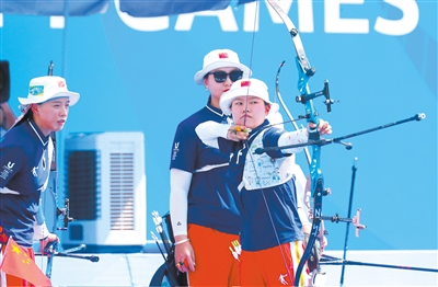 本報成都7月30日訊(記者 高毅哲)今天,中國射箭隊選手以231∶224戰(zhàn)勝法國隊,奪得男子復(fù)合弓團體冠軍,為中國射箭隊收獲了在成都大運會上的第一枚金牌。而在今天舉行的成都大運會射箭項目女子反曲弓團體決賽中,中國女子反曲弓隊在附加局以1環(huán)優(yōu)勢爭得團體賽冠軍,為中國射箭隊再添一枚金牌。