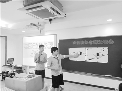 以“技術工程”模塊為例,為迎接杭州亞運會,全校發起綠色低碳亞運挑戰賽。學生陶追遠發現,冬天在家里洗手時水特別冷,每次燒熱水又感覺浪費,一場關于“太陽能熱水器”的研究之旅就此啟動。