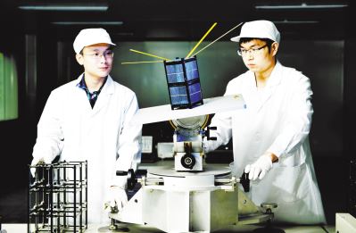 ①西工大航天學院學生在調試微小衛星。郭友軍攝