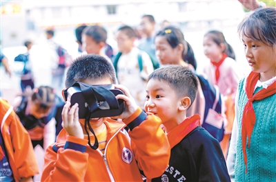 近日,湖南省懷化市通道侗族自治縣第一完全小學學生在體驗VR眼鏡。由懷化市科協組織的科技大篷車進校園活動在該校開展,孩子們盡情享受“科普盛宴”,近距離感受科技魅力。