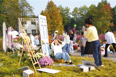 10月29日,浙江農(nóng)林大學師生與菊花合影。當日,在該校園林學院教育教學實踐基地里,300多個品種的數(shù)萬朵菊花爭相開放,把秋季校園點綴得格外美麗,吸引眾多師生駐足觀賞。
